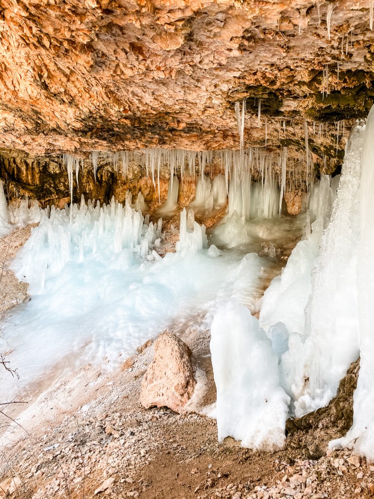 This was a very short bonus trail that we tacked on to the end of our trip through Bryce. It ends at a small drippy waterfall in a little sheltered cave. Depending on the season of your visit, you’ll see either a cave full of icicles or a cave full of spongy moss. Of course, we got the icicles, and it was awesome! A perfect little chaser for our hoodoo bonanza from before. This would be a great trail to bring little kids on since you can splash around in the streams and waterfalls. There are only a few parking spaces at this trailhead though, so avoid peak hours if you can!